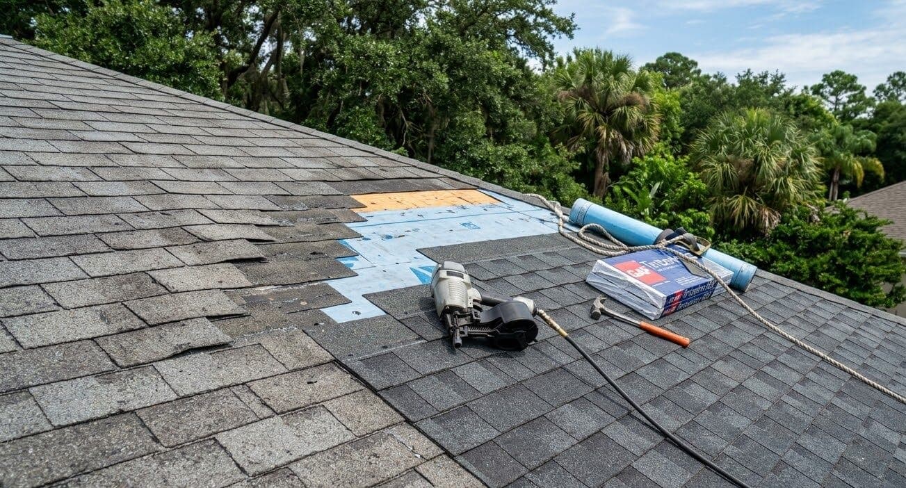 Asphalt shingles are by far the most common roofing material on homes in Alachua County. They are affordable, widely available, and perform well in Florida’s climate when properly installed and maintained. But shingles do fail, and when they do, prompt repair is essential to prevent water damage to the structure below.