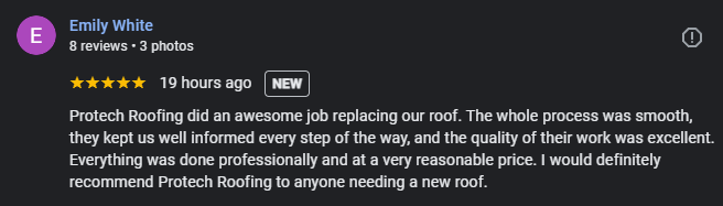 Here are a few examples of what homeowners say after working with Protech Roofing.